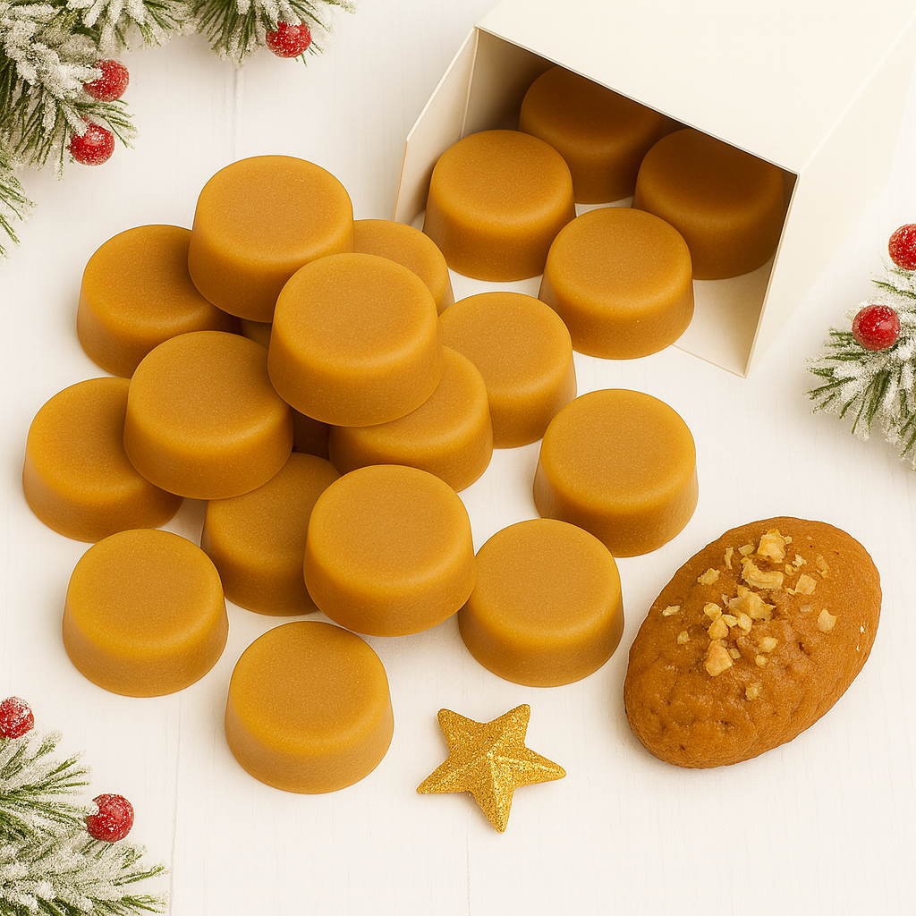 Αφεθείτε στο μαγευτικό άρωμα του Wax Melt τύπου Gingerbread, μιας αρωματικής απόλαυσης που ξυπνά τη θαλπωρή των γιορτών και θυμίζει τα κλασικά χριστουγεννιάτικα σπιτάκια και τα μπισκοτένια ανθρωπάκια που λατρεύουμε. Η ζεστή, γλυκιά και πικάντικη του καρδιά γεμίζει τον χώρο με άρωμα φρεσκοψημένου gingerbread, σαν να μόλις βγήκε από τον φούρνο — ζύμη με μέλι, καστανή ζάχαρη, κανέλα, τζίντζερ και μοσχοκάρυδο που αναμειγνύονται σε μια απόλυτα χουχουλιαστή, γιορτινή αγκαλιά. Καθώς λιώνει, απελευθερώνει νότες καρυκευμένων μπισκότων, μελιού, βανίλιας και ζεστών μπαχαρικών, δημιουργώντας μια ατμόσφαιρα που θυμίζει παλιές χριστουγεννιάτικες κουζίνες, οικογενειακά γέλια και μικρές στιγμές μαγείας. Ένα άρωμα ζεστό, παιχνιδιάρικο και λαχταριστό, που κάνει τον χώρο σας να μοσχομυρίζει Χριστούγεννα — κάθε μέρα.