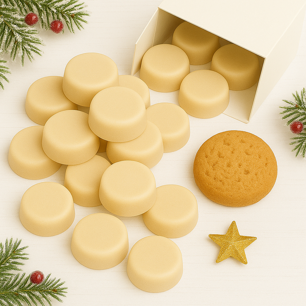 Απολαύστε το μοναδικό άρωμα του Wax Melt τύπου Cookie , μια αρωματική εμπειρία που θυμίζει φρεσκοψημένα μπισκότα, ζεστά από τον φούρνο, γεμίζοντας τον χώρο με την πιο γλυκιά, οικεία αίσθηση των γιορτών. Η απαλή, βουτυρένια καρδιά του αποκαλύπτει νότες ζύμης, βανίλιας, καστανής ζάχαρης και μια ανεπαίσθητη τραγανότητα που θυμίζει το πρώτο δάγκωμα σε ένα ζεστό, αφράτο μπισκότο. Ένα άρωμα που προκαλεί χαμόγελα και ξυπνά αναμνήσεις από χριστουγεννιάτικες κουζίνες, παιδικά πάρτι και απογεύματα με ζεστή σοκολάτα. Καθώς λιώνει, αναδύει στρώσεις γλύκας και ζεστασιάς — βούτυρο, ζύμη, βανίλια, μια ιδέα καραμέλας — δημιουργώντας μια ατμόσφαιρα χαλάρωσης και απόλυτης θαλπωρής. Ένα άρωμα απλό, τρυφερό και… γευστικό, που κάνει τον χώρο σας να μοσχομυρίζει σαν να ψήνονται μπισκότα κάθε στιγμή της ημέρας .
