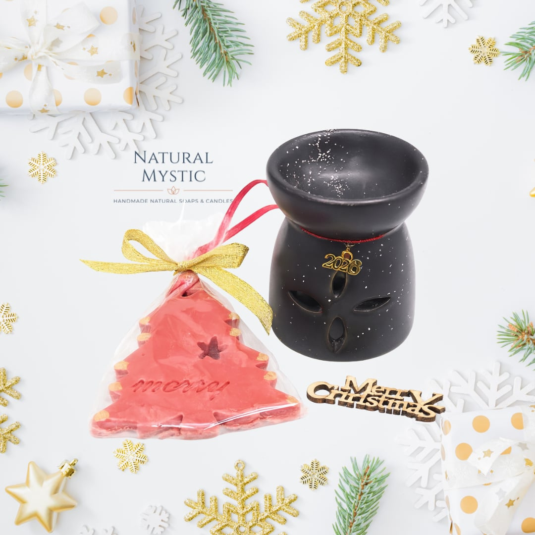 Αναβάθμισε τον χώρο σου με το απόλυτο χριστουγεννιάτικο σετ αρωματισμού! Ο κεραμικός αρωματιστής με στοιχείο 2026 συνδυάζεται με χειροποίητα Wax Melts σε χριστουγεννιάτικο σχήμα δένδρου , δημιουργώντας μια ατμόσφαιρα γεμάτη ζεστασιά, θαλπωρή και γιορτινά αρώματα. Κάθε σετ περιλαμβάνει Wax Melts σε 5 υπέροχα αρώματα: