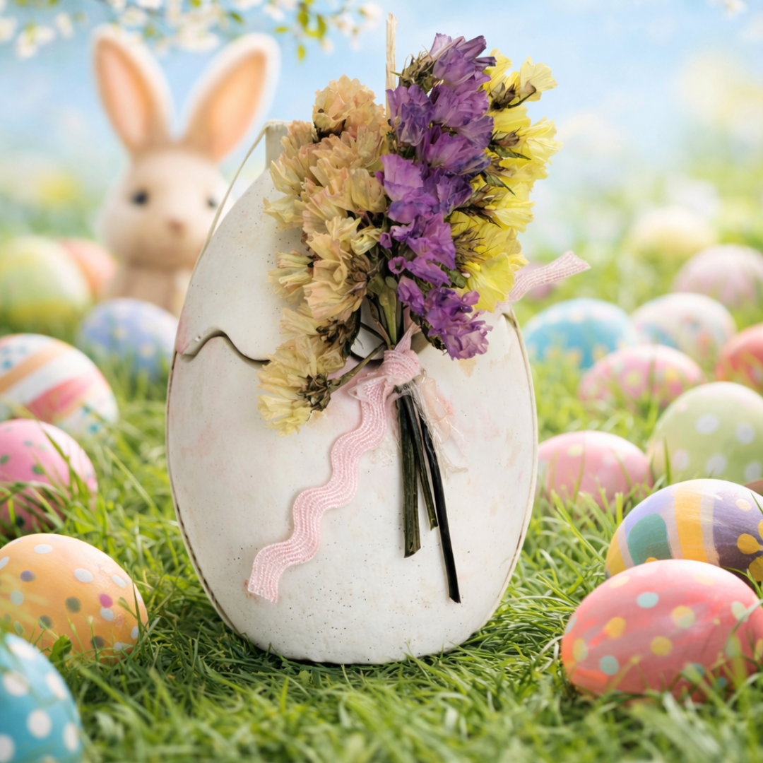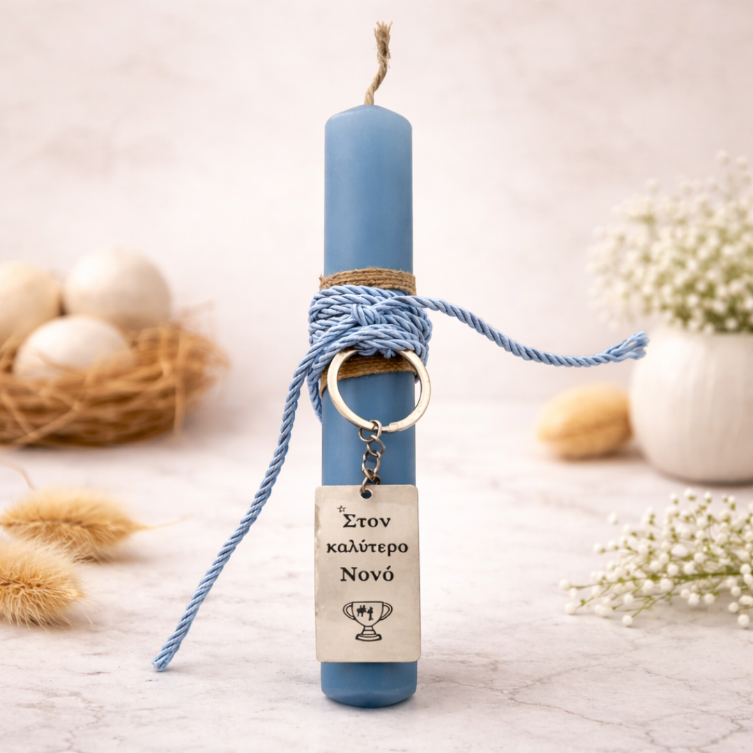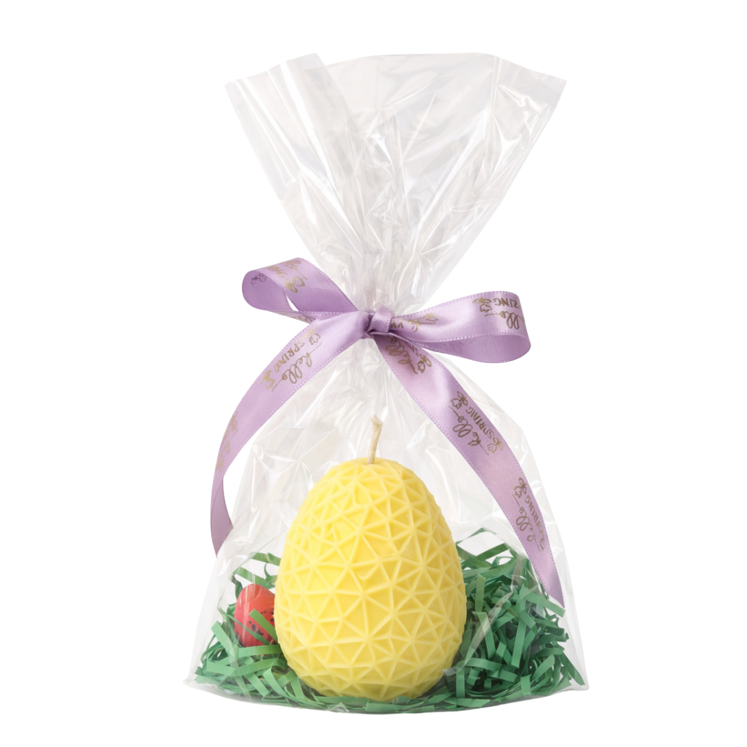 Χειροποίητο πασχαλινό κερί σε σχήμα αυγού με ανάγλυφο σχέδιο και διακοσμητικό φιόγκο , φτιαγμένο από φυσικό κερί κραμβέλαιου . Το κομψό του σχέδιο και οι ανάγλυφες λεπτομέρειες δημιουργούν ένα όμορφο διακοσμητικό για το Πάσχα, ενώ το φυσικό κερί προσφέρει καθαρή καύση και απαλό άρωμα στον χώρο. Ιδανικό για: • πασχαλινή διακόσμηση • πασχαλινά καλάθια • δώρα για βαφτιστήρια • δωράκια φιλοξενίας • διακόσμηση πασχαλινού τραπεζιού