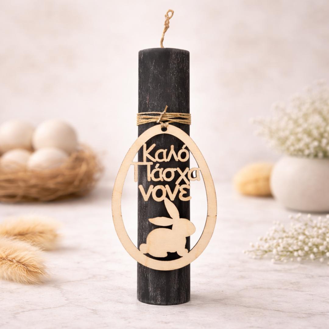 Χειροποίητο πασχαλινό κερί σε σχήμα αυγού με ανάγλυφο λαγό , φτιαγμένο από φυσικό κερί κραμβέλαιου . Το κομψό του σχέδιο αποπνέει ανοιξιάτικη διάθεση και αποτελεί μια όμορφη επιλογή για πασχαλινή διακόσμηση ή μικρό δώρο. Το φυσικό κερί κραμβέλαιου προσφέρει καθαρή καύση και απελευθερώνει ένα ευχάριστο άρωμα στον χώρο, δημιουργώντας ζεστή και γιορτινή ατμόσφαιρα. Ιδανικό για: • πασχαλινή διακόσμηση • πασχαλινά καλάθια • δωράκια για βαφτιστήρια • δώρα φιλοξενίας • διακόσμηση πασχαλινού τραπεζιού